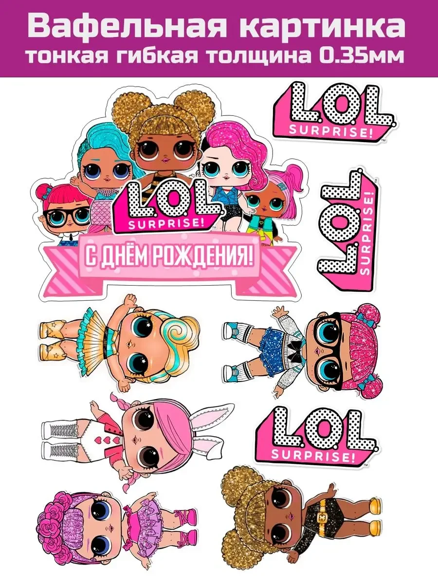 Вафельная картинка кукок ЛОЛ украсит Ваши десерты, торт в День рождения девочки. Вафельная картинка тонкая и гибкая с толщиной 0.35мм и напечатана на формате А4. Все элементы вырезаются ножницами, желательно за день до праздника. отдельные элементы рекомендуем укладывать на основу шоколадную или на сахарную мастику и прикрепить на шпашку. Рекомендуем:- укладывать картинку на мастику, предварительно смазать слегка водой, что бы образовался липкий слой или смазать картинку кондитерским нейтральным гелем. - укладывать на крем, в котором содержится минимум жидкости, это такие как, белково-заварной крем, на маслянной основе, ганаш или на застывший айсинг. Если картинку уложить на сметанный, сливочный крем, то картинка может размокнуть.Картинки печатаем яркие, в самом высоком разрешении. Вафельная бумага премиум класса. Производитель Германия и Нидерланды.Срок годности картинки 12 месяцев.