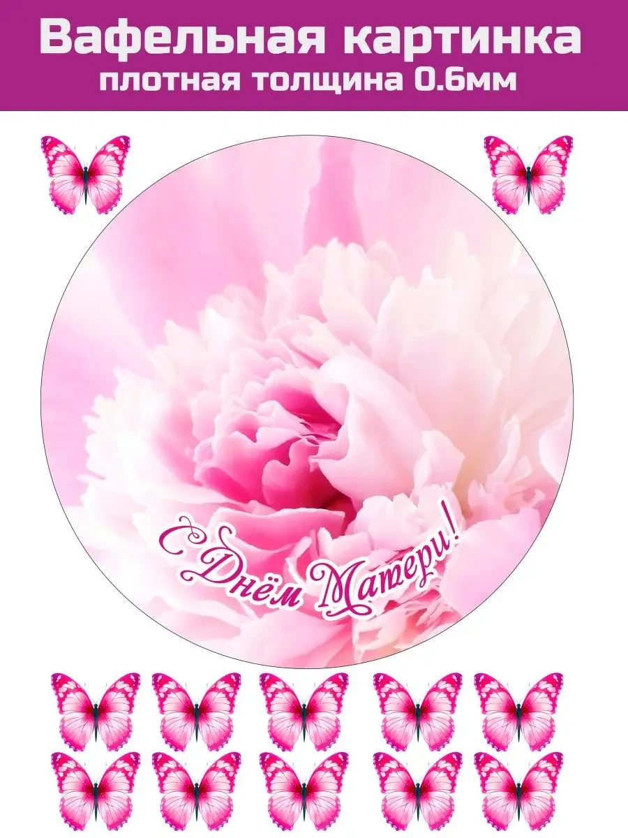 Вафельная картинка с днём матери придаст праздник с темой поздравления мамы. Вафельная картинка напечатана съедобными пищевыми красителями. Толщина листа 0.6мм. Все элементы печати вырезаются ножницами. Рекомендуем:- укладывать картинку на мастику, предварительно смазать слегка водой, что бы образовался липкий слой или смазать картинку кондитерским нейтральным гелем. - укладывать на крем, в котором содержится минимум жидкости, это такие как, белково-заварной крем, на маслянной основе, ганаш или на застывший айсинг. Если картинку уложить на сметанный, сливочный крем, то картинка может размокнуть.Картинки печатаем яркие, в самом высоком разрешении. Вафельная бумага премиум класса. Производитель Германия и Нидерланды.Срок годности картинки 12 месяцев.