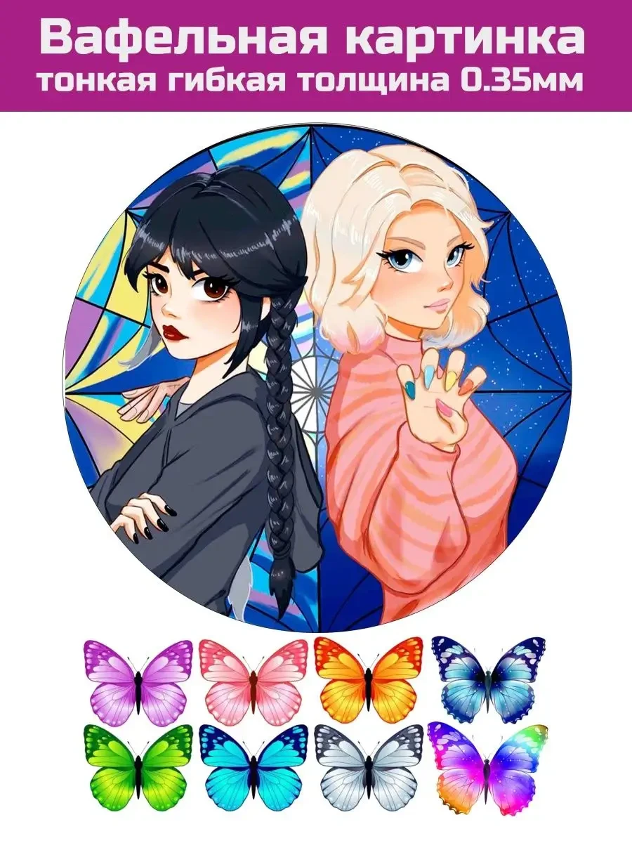 Вафельная картинка с героиями из топового сериала Уэнздей из семейки Адамс украсит Ваш торт и капкейки на праздник Дня Рождения и в день Хэллоуина. Вафельная картинка с изображением Уэнсдей Wednesday, а также всё связанное с темой Хэллоуина, вырезаются ножницами. Съедобная печать яркая, напечатана пищевыми красителями на гибком вафельном листе с толщиной 0.35мм. Все элементы печати вырезаются ножницами. Рекомендуем укладывать картинку на мастику, предварительно смазать слегка водой, что бы образовался липкий слой или смазать картинку кондитерским нейтральным гелем. Укладывать на крем, в котором содержится минимум жидкости, это такие как, белково-заварной крем, на масляной основе, ганаш или на застывший айсинг. Если картинку уложить на сметанный, сливочный крем, то картинка может размокнуть. Картинки печатаем яркие, в самом высоком разрешении. Вафельная бумага премиум класса. Производитель Германия и Нидерланды. Срок годности картинки 12 месяцев.