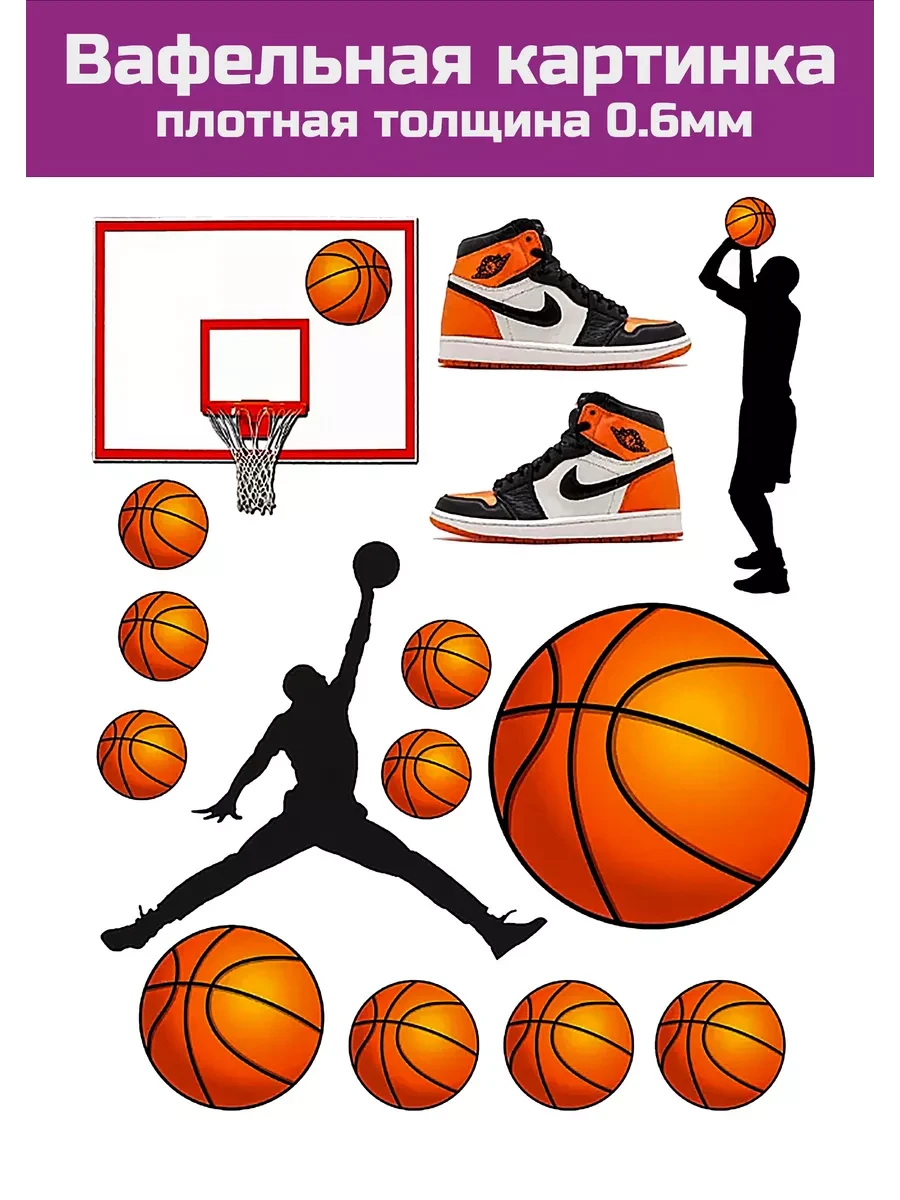 Украсьте праздник на День Рождения яркой вафельной картинкой с изображением известного баскетболиста, например, Майкла Джордана. Эта съедобная печать наносится на тонкий вафельный лист, который можно разместить как топер на торте или на всю поверхность. Толщина вафельного листа составляет 0.6 мм, и все элементы печати вырезаются ножницами.