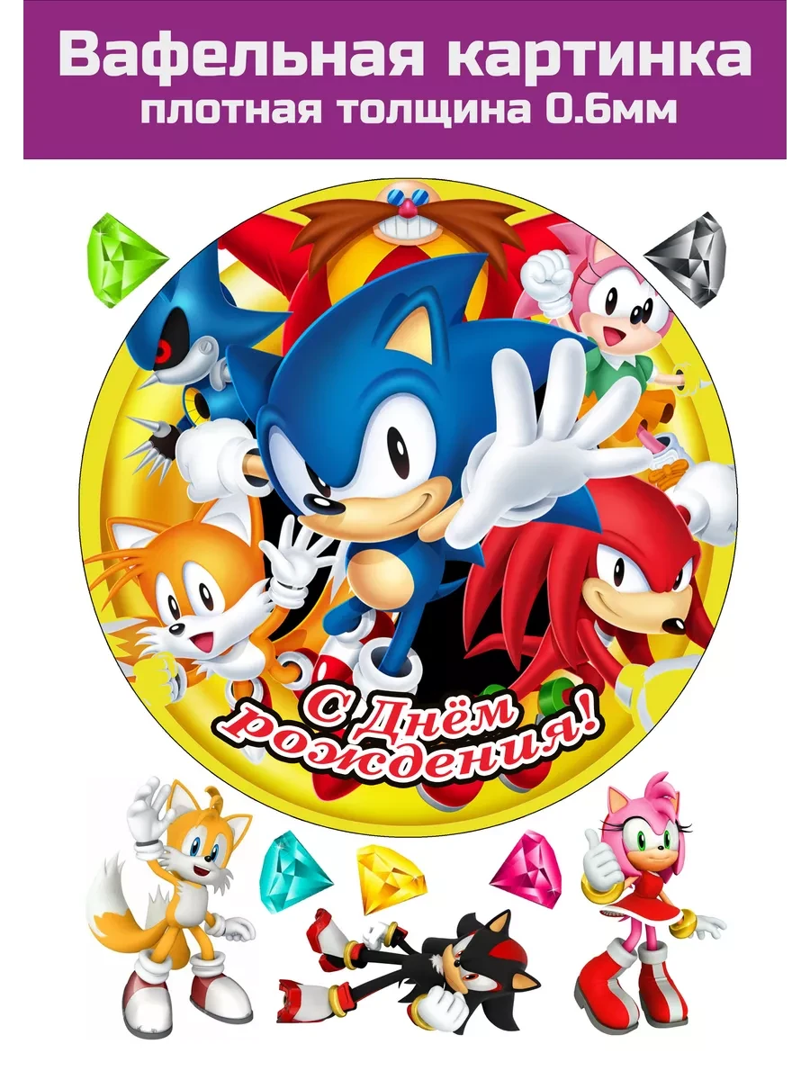 Вафельная картинка легендарной детской компьютерной игры Соник украсит ваши десерты, торты и пряники для фанатов и любителей игры и фильмов с участием ежика Sonic на День Рождения или знаменательной вечеринке. Эта вафельная картинка имеет толщину 0,6 мм и напечатана на формате А4. Все элементы можно вырезать ножницами, желательно за день до праздника.